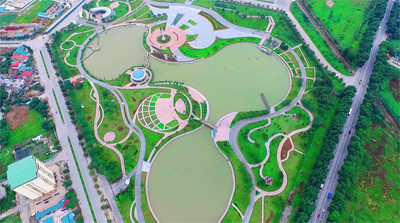 Hồ điều hòa được bố trí đan xen tạo nên một cảnh quan, mềm mại, hấp dẫn