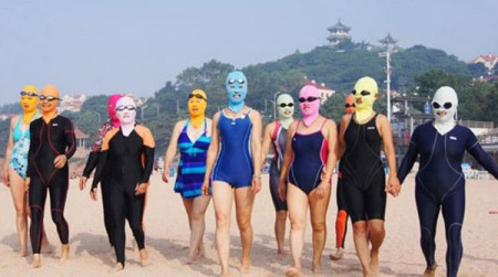 Sản phẩm này có tên là Facekini - được biết đến như bikini cho mặt với chất liệu giống như một chiếc bikini thông thường như sợi ni lông, polyster, lycra. Facekini được thiết kế như một chiếc mặt nạ che mặt và cổ, chỉ để lộ ra đôi mắt, mũi và miệng.