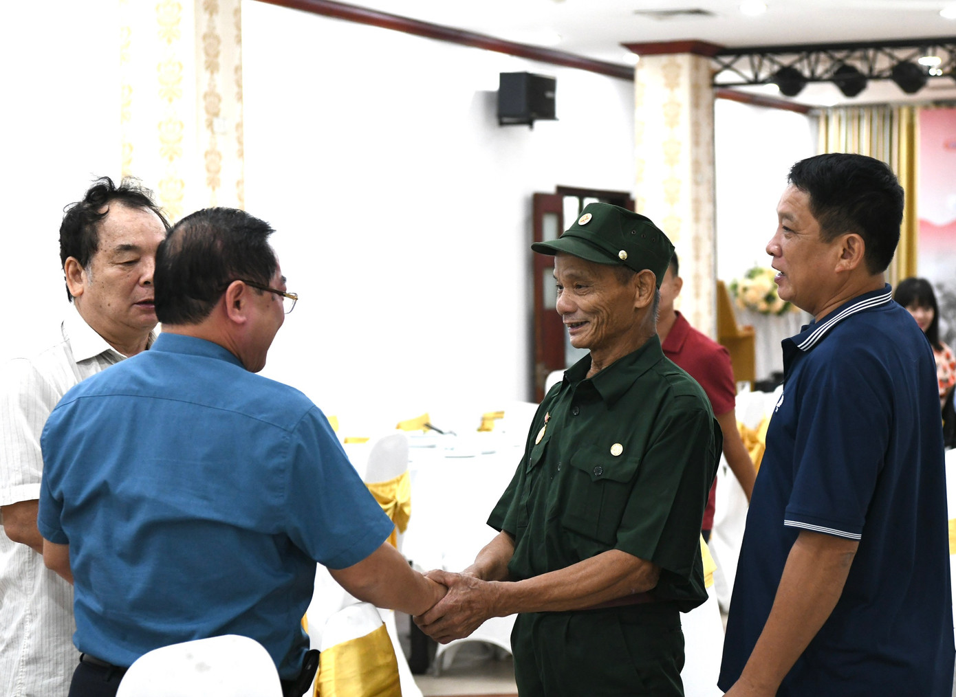 | Các thương binh nhận quà tặng của các đơn vị đồng hành. |
