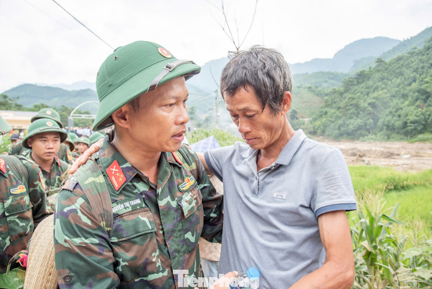 Tròn 2 tuần kể từ buổi sáng định mệnh ấy, lực lượng quân đội đã có mặt sát cánh cùng đồng bào trong thời điểm đau thương và nguy nan nhất. Hàng trăm cán bộ, chiến sĩ thuộc Trung đoàn 98 (Sư đoàn 316, Quân khu 2), cùng đội đặc nhiệm quân khuyển (chó nghiệp vụ) thuộc Trường Trung cấp 24 Biên phòng không quản vất vả, hiểm nguy, đã khẩn trương tìm kiếm các nạn nhân đang bị vùi lấp dưới núi bùn.