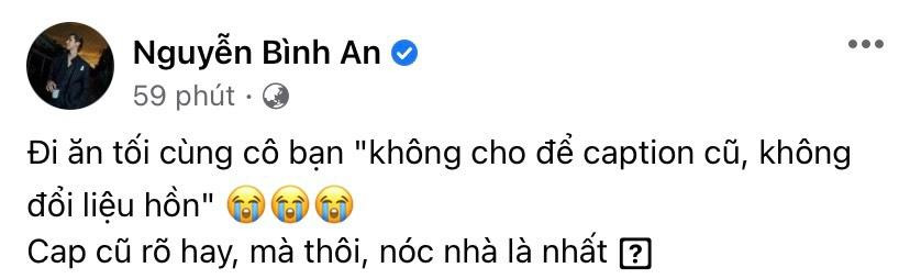 Anh viết: "Đi ăn tối cùng cô bạn "không cho để caption cũ, không đổi liệu hồn". Cap cũ rõ hay, mà thôi, nóc nhà là nhất".