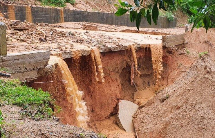 Mặt đường rộng 5,5 m tuy nhiên, sạt lở đã ăn sâu vào khoảng gần 1 m (sạt lở taluy âm khoảng 400 m3). Hiện giao thông không bị chia cắt, vẫn lưu thông bình thường. Tuy nhiên, để đảm bảo an toàn, địa phương giao Phòng Kinh tế hạ tầng tiến hành rào chắn để cảnh báo cho người dân. Sau khi hết mưa sẽ tiến hành khắc phục.