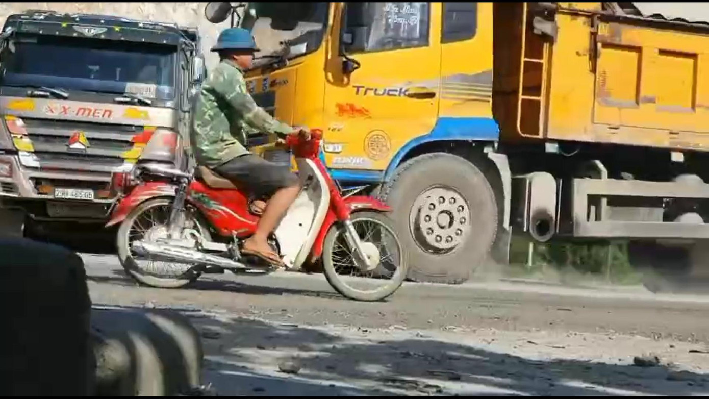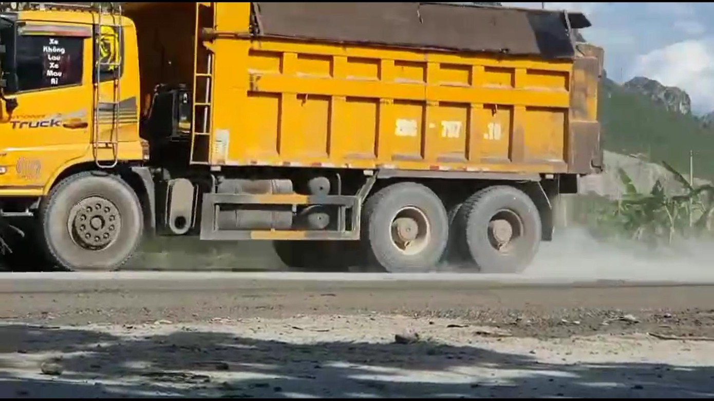 Những chiếc xe tải chạy qua đây đều mang logo trước cabin như: Thành Sơn, Minh Toàn, HC, Phong Cảnh… Xe chạy từ các điểm mỏ ra đều được chất đầy ắp đá, bằng mắt thường có thể thấy những chiếc xe này đã được cơi nới và chở vượt quá cả thành thùng cơi nới.
