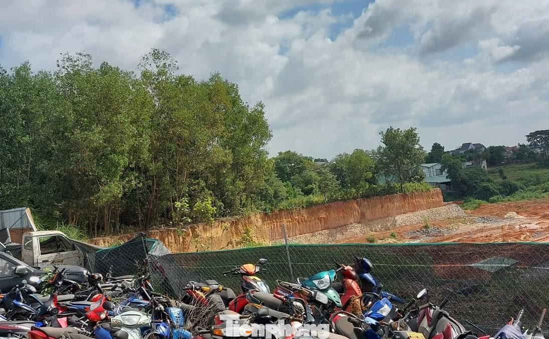 | Các phương tiện vi phạm đang tạm giữ ở bãi được di chuyển lùi vào vì sạt lở |