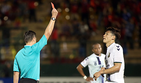 Lợi thế hơn người giúp Bình Dương dễ dàng hơn trong việc triển khai tấn công. Đến phút 86, hậu vệ Kim Hyung-il phạm lỗi trong vòng cấm với Han Seung-yeop, ngoại binh của Bình Dương. Cầu thủ này bị thẻ đỏ trực tiếp, còn chủ nhà được quả phạt đền thứ hai.