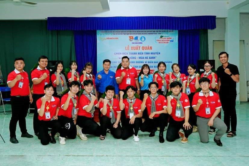 | Đội hình sinh viên tình nguyện 'Mùa Hè Xanh' và 'Hành trình tuổi trẻ Bình Dương vì biển đảo quê hương' tại huyện Phú Quý, tỉnh Bình Thuận, năm 2024. |