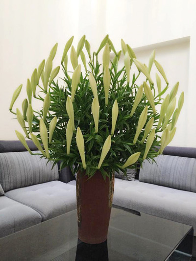 Tháng 4 là lúc những bông hoa loa kèn đua sắc, hầu như gia đình nào ở Hà Nội cũng có một bình hoa trắng tinh khôi trong nhà. Hoa loa kèn còn được gọi là bách hợp đẹp nhất khi cắm riêng, không cần chung với loại hoa nào.