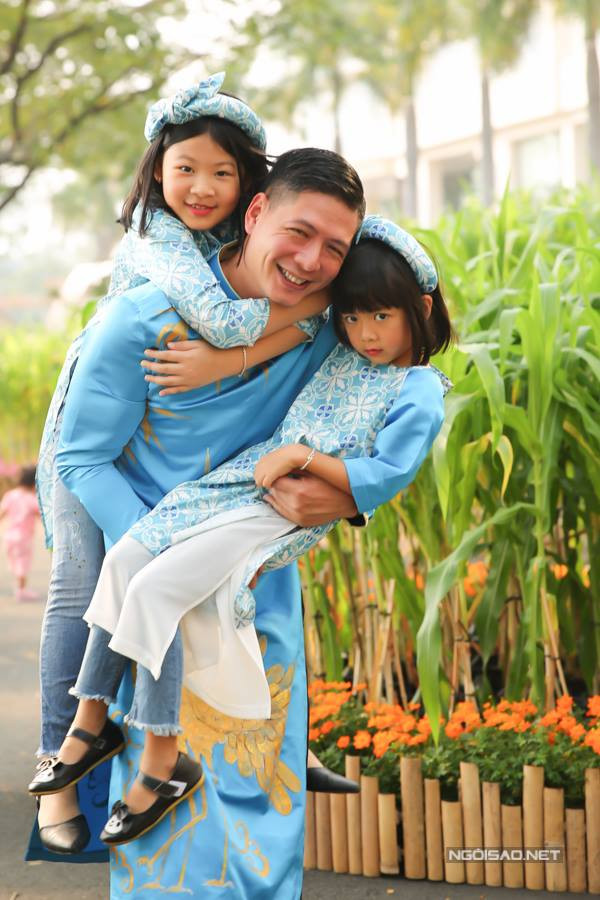 Hai công chúa tỏ ra hào hứng khi được ngắm đường hoa lung linh sắc màu. Năm nào vào những ngày giáp Tết Bình Minh cũng ngừng chạy show, dành thời gian đưa vợ con đi chơi, chụp một bộ ảnh kỷ niệm.