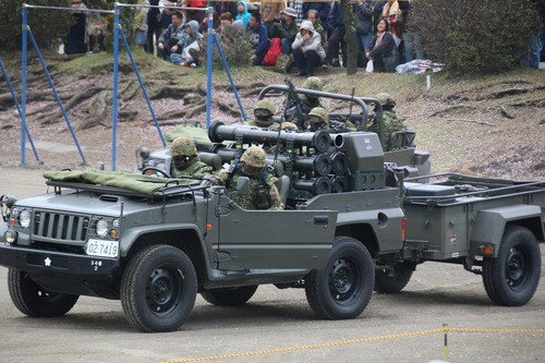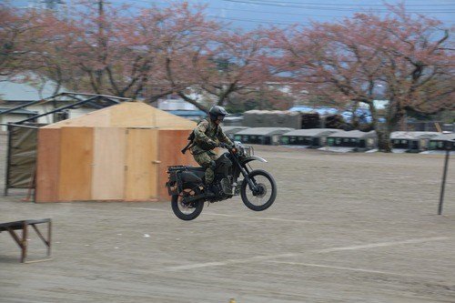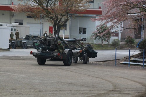 Đợt diễu binh, tập trận này của Lực lượng Phòng vệ Nhật Bản được tổ chức trong hai ngày 20-21/4/2015 tại căn cứ quân sự Camp Itazuma. Đây cũng là một trong rất nhiều căn cứ quân sự Nhật Bản đóng dưới chân núi Phú Sĩ. Trong ảnh các binh sĩ Nhật Bản đang duyệt binh với các khẩu súng dương cao lưỡi lê.