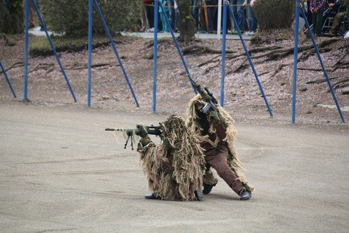Nhóm lính ngụy trang đang dùng súng bắn tỉa ngắm bắn mục tiêu.