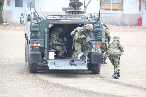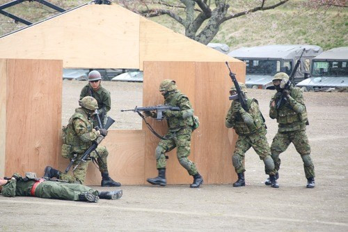 Các binh sĩ đội đặc nhiệm Nhật Bản được trang bị các súng đã sẵn sàng tham gia các tình huống đánh địch giả định.