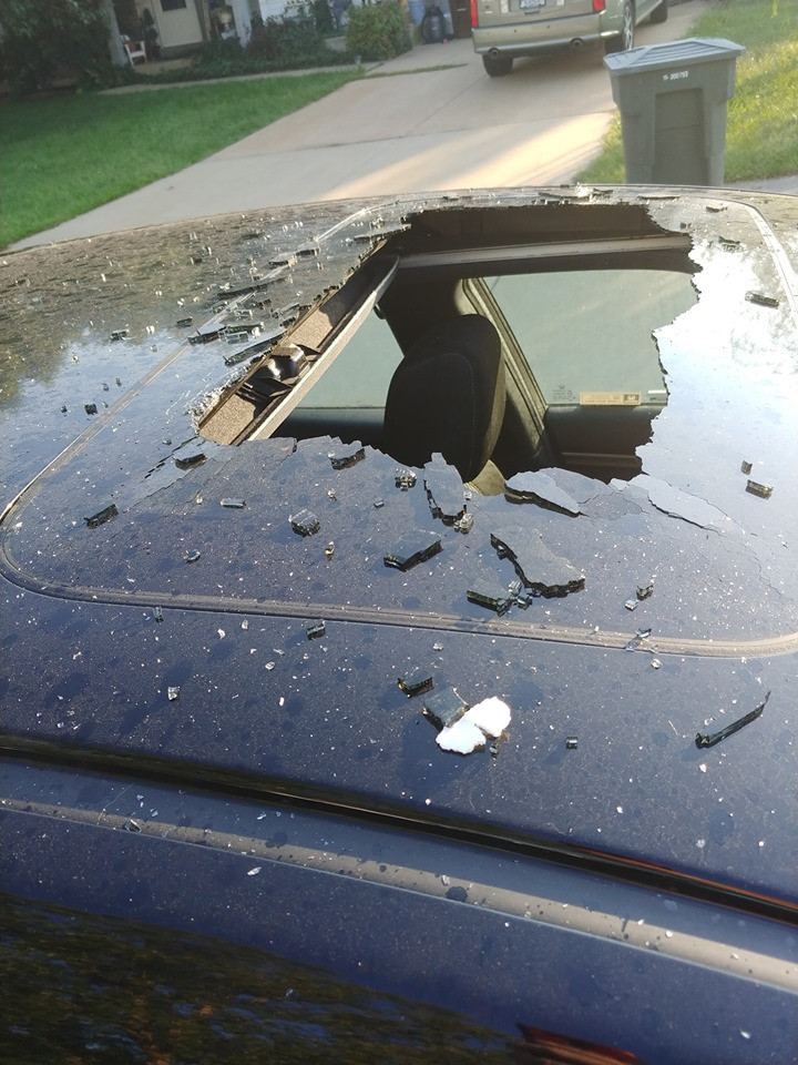 Cửa sổ trời của xe Honda Civic vỡ toang. Ảnh: FB/Christine Bader Debrecht