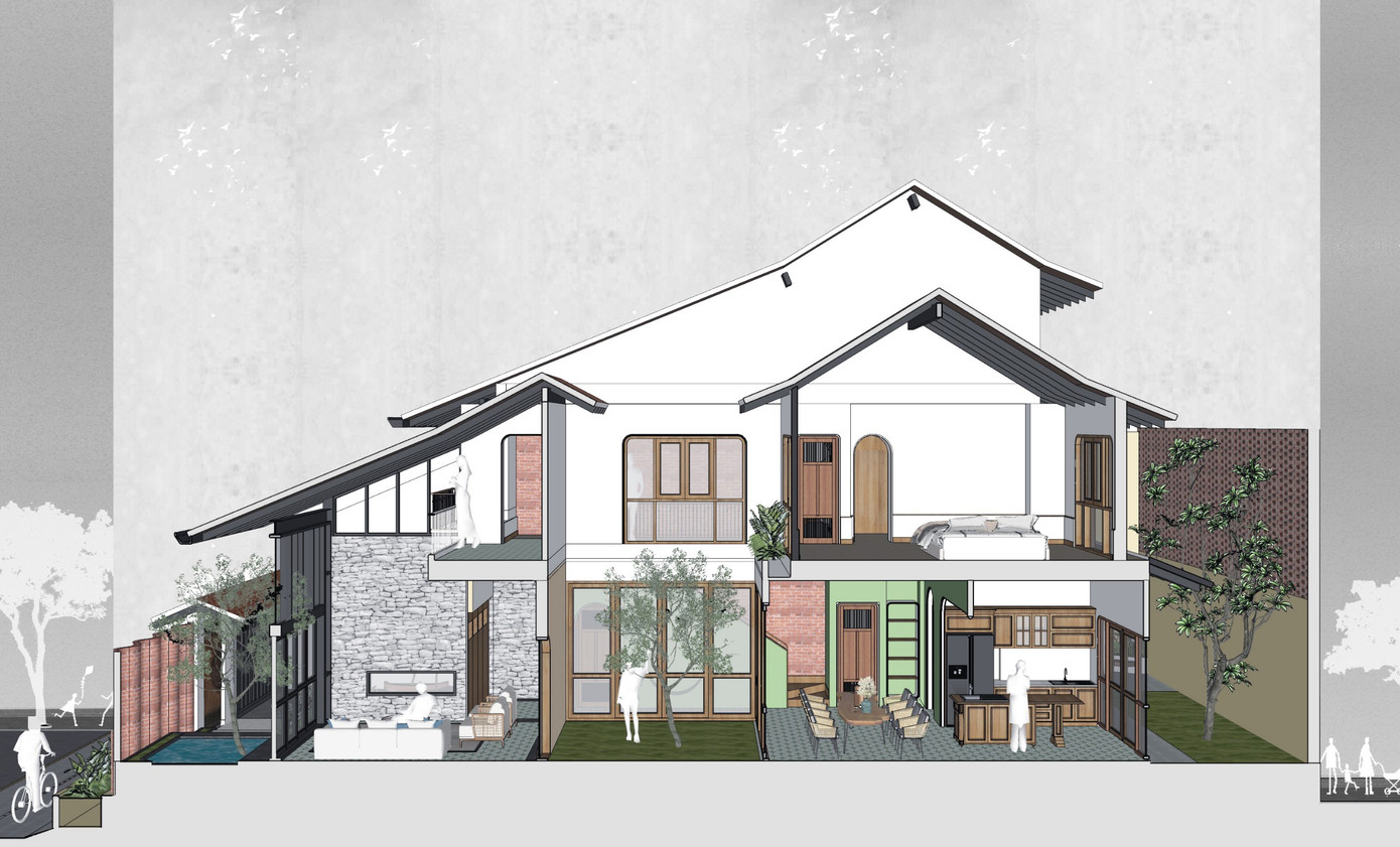Ấp ủ về một không gian sống chứa đầy hoài niệm, ngôi nhà hiện đại kết hợp với phong cách Đông Dương gây ấn tượng mạnh mẽ ngay từ mặt dựng về một nếp nhà thân quen nhưng vẫn đủ mới mẻ để khám phá.