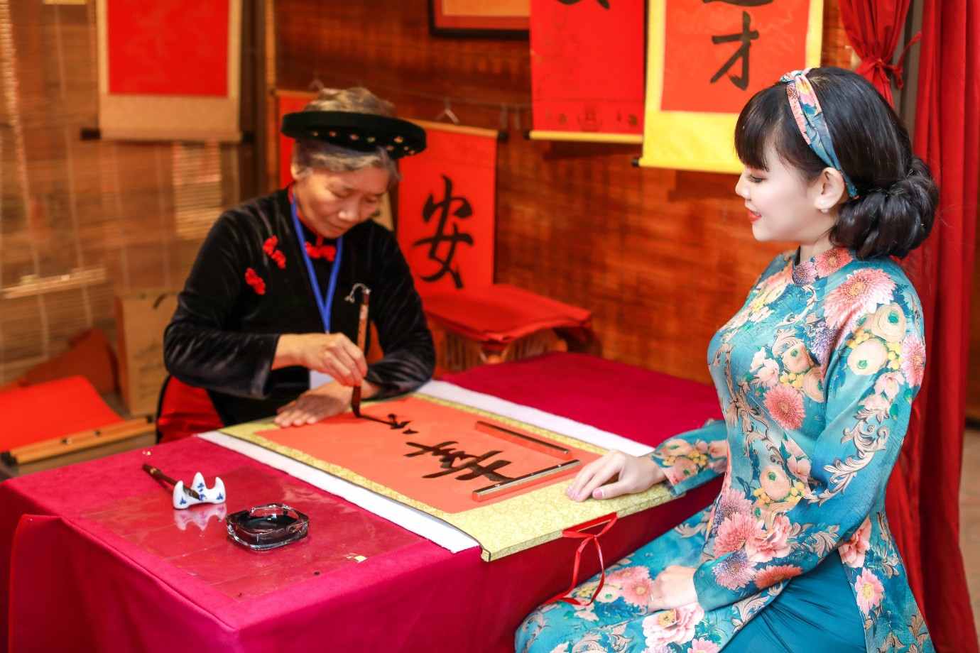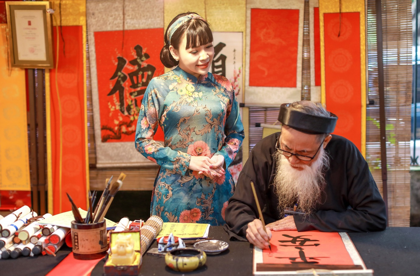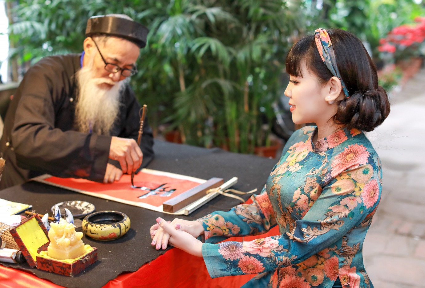 Tục xin chữ đầu năm mới tại Văn Miếu Quốc Tử Giám (Hà Nội) là nét đẹp có từ lâu đời, phản ánh tinh thần hiếu học, đặc biệt là với giới trẻ hiện nay. Từ sáng mùng 1 Tết, rất nhiều người dân đã đến Văn Miếu Quốc Tử Giám- Hà Nội để du xuân và xin chữ cầu mong một năm mới bình an, học hành tiến tới. Giữa dòng người tấp nập, hoa hậu Phạm Bích Thủy vẫn vô cùng nổi bật trong tà áo dài truyền thống nhưng cũng rất độc đáo, tinh tế