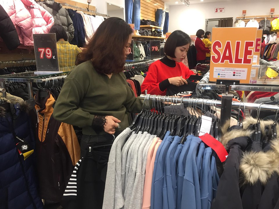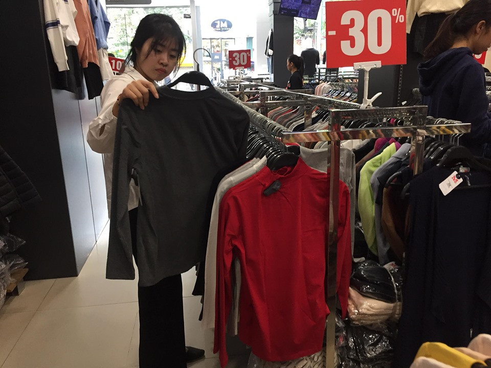 Chị Bích Thu (Hoàng Mai, Hà Nội) đang xếp hàng chờ thử đồ tại một cửa hàng thời trang trung tâm thương mại, cho biết: “Tôi ngại nhất xếp hàng chờ đợi thử đồ nhưng mua quần áo mà không thử làm sao biết vừa hay không nên đành cố đợi thử. Tôi thấy đồ giảm nhiều nên cũng chọn được vài bộ ưng ý”.
