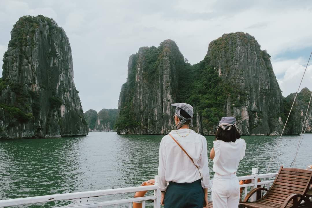 Vịnh Hạ Long là địa điểm được chàng trai ngoại quốc lựa chọn để kết thúc chuyến đi lần này. Anh chàng cùng hội bạn đã cùng thưởng thức buổi trưa trên tàu vừa chiêm ngưỡng cảnh quan hùng vĩ tại nơi đây. Bên cạnh đó, hoạt động khám phá hang động cũng khiến cả hội vô cùng thích thú.