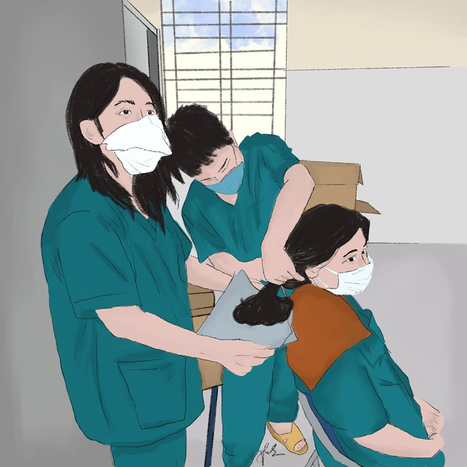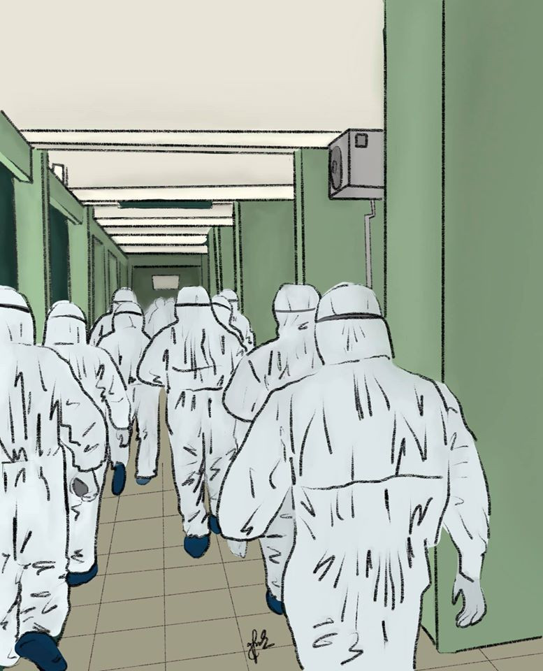 Nguyễn Minh Anh đang là sinh viên năm thứ ba, khoa Kế toán, trường ĐH Kinh tế (ĐH Đà Nẵng). Học ngành Kế toán, nhưng Minh Anh lại rất thích vẽ. Những bức tranh của cô bạn được thực hiện ngay trên điện thoại. Trung bình để vẽ một bức mất khoảng 3 giờ đồng hồ. Mỗi ngày Minh Anh có thể vẽ 1-2 bức. Đến nay, cô bạn quê Quảng Trị đã vẽ hơn 10 bức và sẽ còn tiếp tục vẽ đến khi nào công cuộc chống dịch còn tiếp tục, như một sự động viên thầm lặng mà chân tình. Mỗi lần vẽ xong, cô bạn đưa ngay lên trang cá nhân và luôn nhận được rất nhiều lời khen.