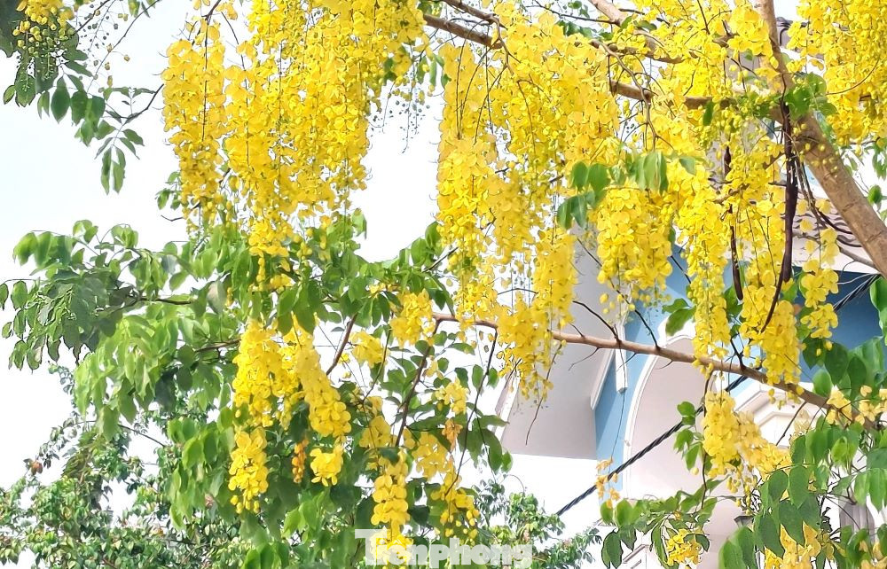 | Cứ đến mùa, hoa bò cạp vàng lại rủ thành từng dây dài, cánh hoa mỏng manh, có màu vàng tươi trên các đường phố của thành phố mới Bình Dương |