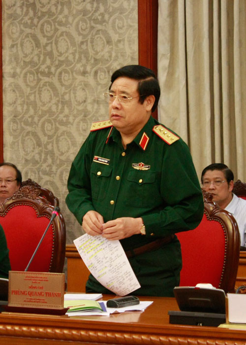 Thay mặt Ban Thường vụ Quân ủy TƯ, Đại tướng Phùng Quang Thanh cảm ơn tập thể Bộ Chính trị đã đóng góp ý kiến vào dự thảo các văn kiện của Quân ủy TƯ; đồng thời làm rõ một số vấn đề liên quan đến xây dựng quân đội và củng cố quốc phòng - an ninh.