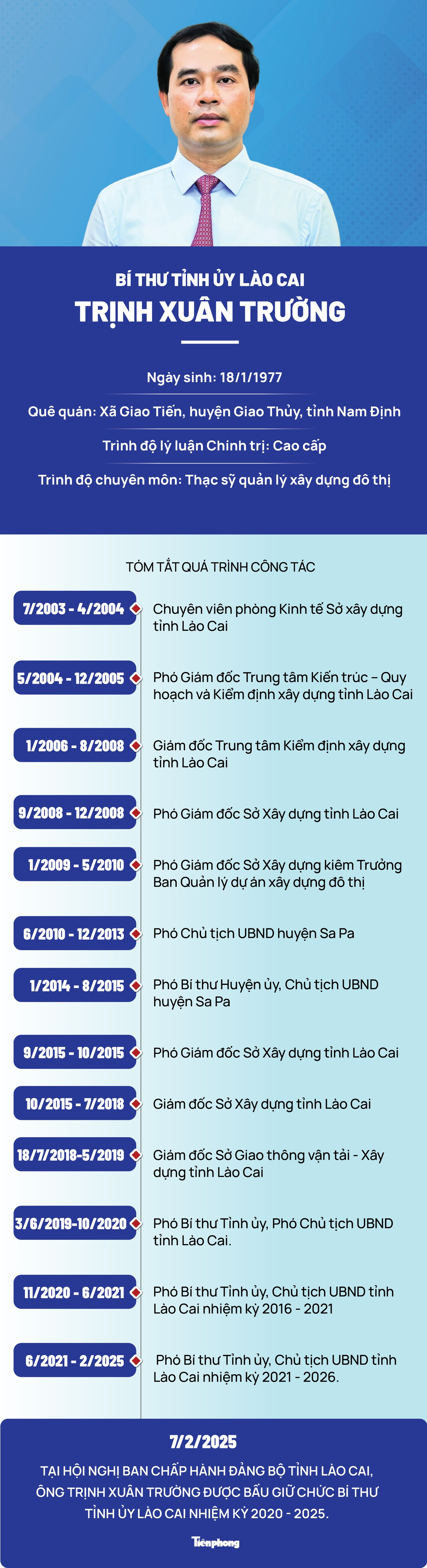 Trước đó, ngày 7/2, Tỉnh ủy Lào Cai tổ chức hội nghị Ban Chấp hành Đảng bộ tỉnh về bầu chức danh Bí thư Tỉnh ủy khóa XVI, nhiệm kỳ 2020 - 2025. Ban Chấp hành Đảng bộ tỉnh và các đại biểu đã nghe tờ trình của Ban Thường vụ Tỉnh ủy về danh sách nhân sự được Bộ Chính trị giới thiệu để bầu Bí thư Tỉnh ủy Lào Cai. Sau đó, hội nghị tiến hành bầu Bí thư Tỉnh ủy nhiệm kỳ 2020-2025. Kết quả, với 100% đại biểu có mặt bỏ phiếu đồng ý, ông Trịnh Xuân Trường được tín nhiệm giữ chức Bí thư Tỉnh ủy Lào Cai nhiệm kỳ 2020 - 2025.