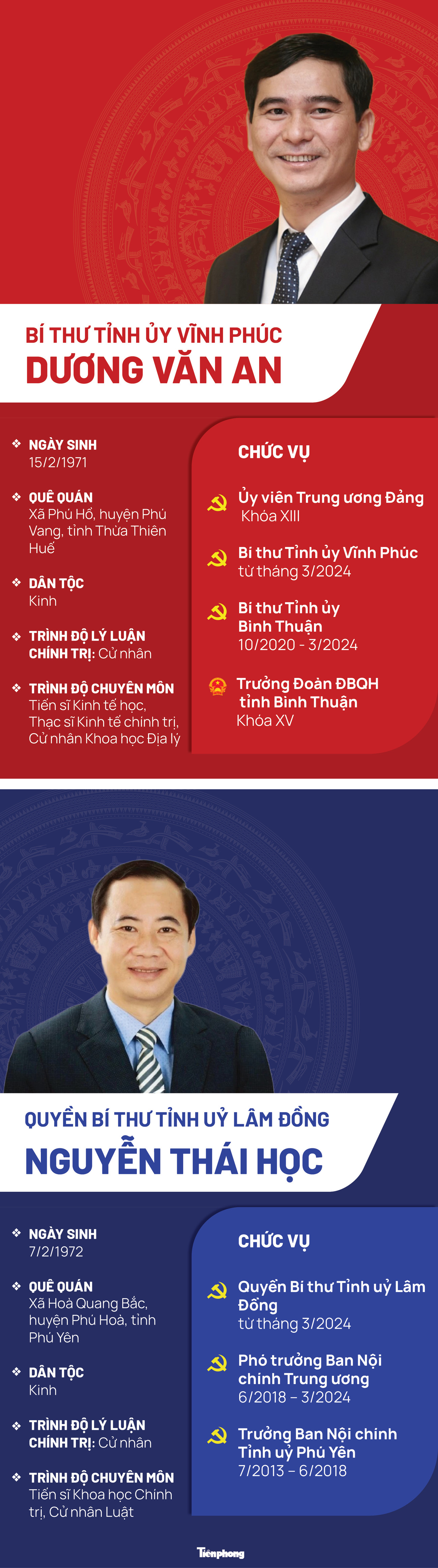 TPO - Bộ Chính trị vừa có các quyết định điều động, chỉ định nhân sự lãnh đạo Tỉnh uỷ Vĩnh Phúc và Tỉnh uỷ Lâm Đồng.