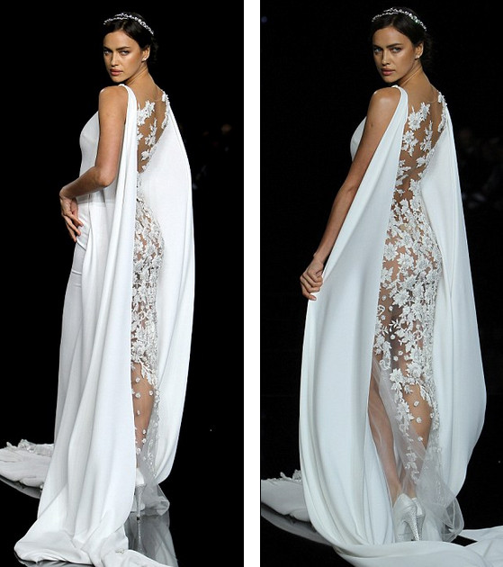 Siêu mẫu Irina Shayk diện váy cưới trên sàn catwalk tại Barcelona, Tây Ban Nha ngày 29/4 vừa qua