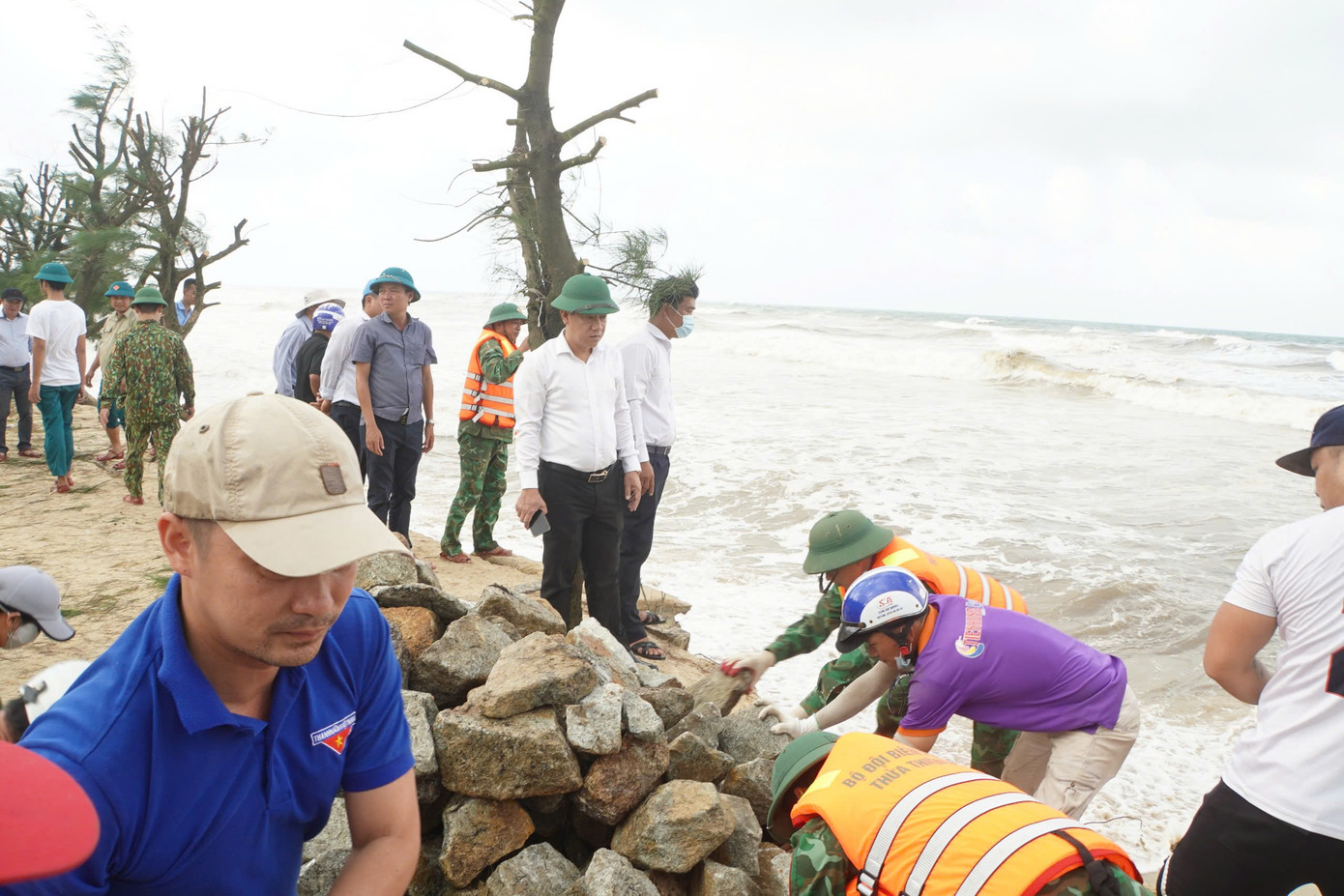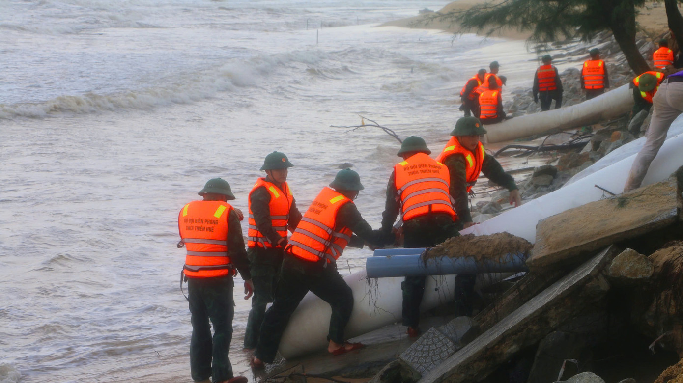 Hình ảnh BĐBP TT-Huế phối hợp các lực lượng địa phương ứng cứu, khắc phục sạt lở bờ biển Phú Thuận: