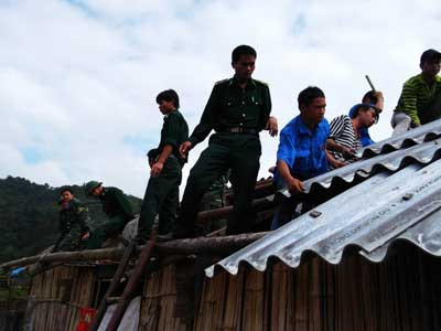 Chỉ trong vòng 10 ngày các đồng chí cán bộ chiến sĩ Đồn BP Pha Long đã đóng góp trên 200 ngày công, tu sửa, lợp lại toàn bộ mái nhà cho các hộ gia đình bị thiệt hại, giúp đồng bào từng bước ổn định cuộc sống.