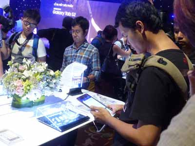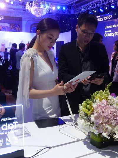 Các khách hàng đang trải nghiệm trên chiếc Tab S2