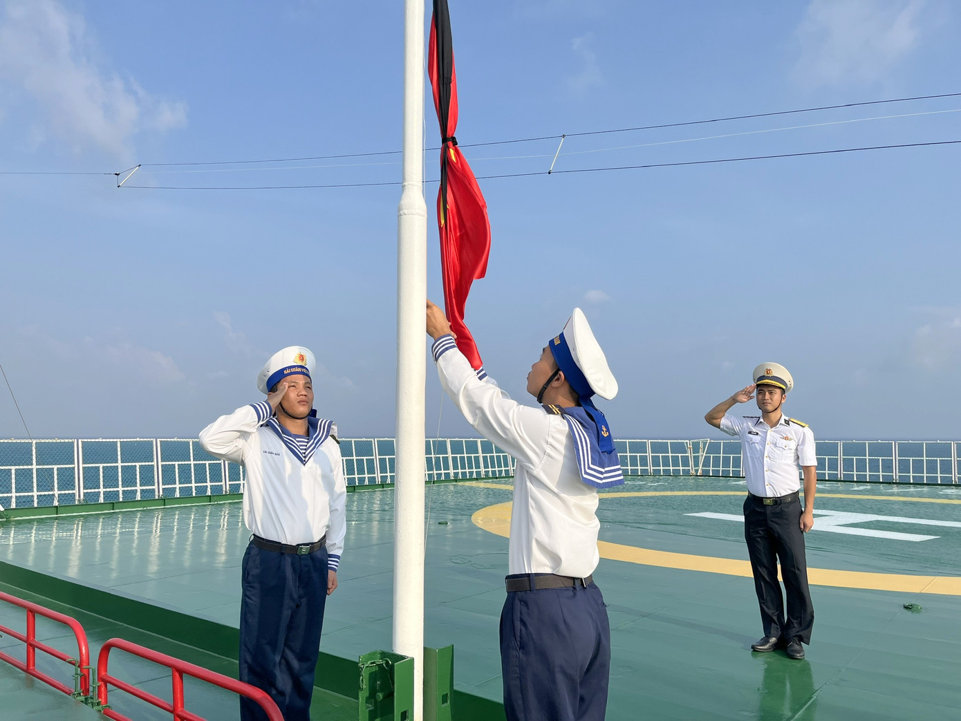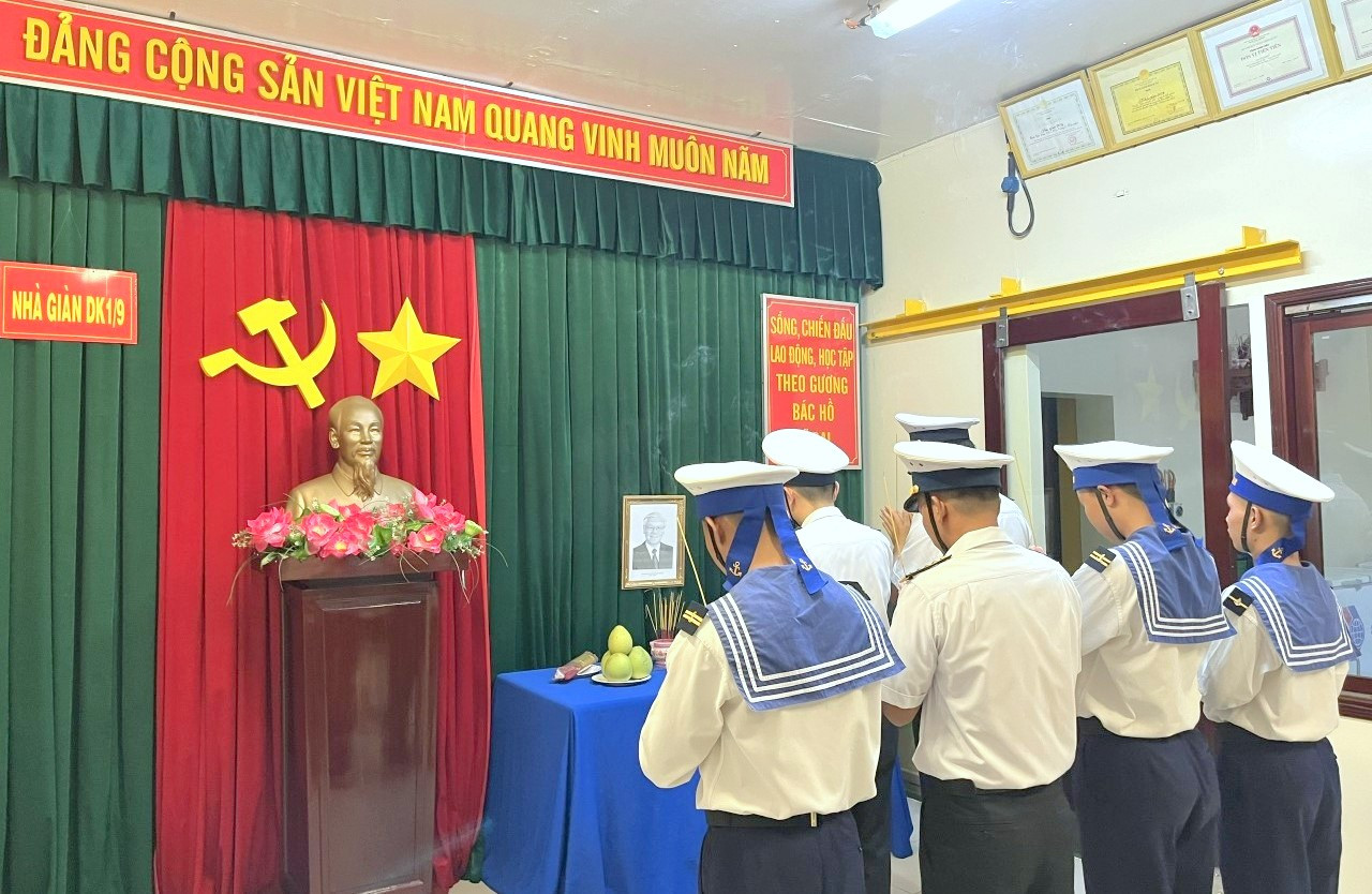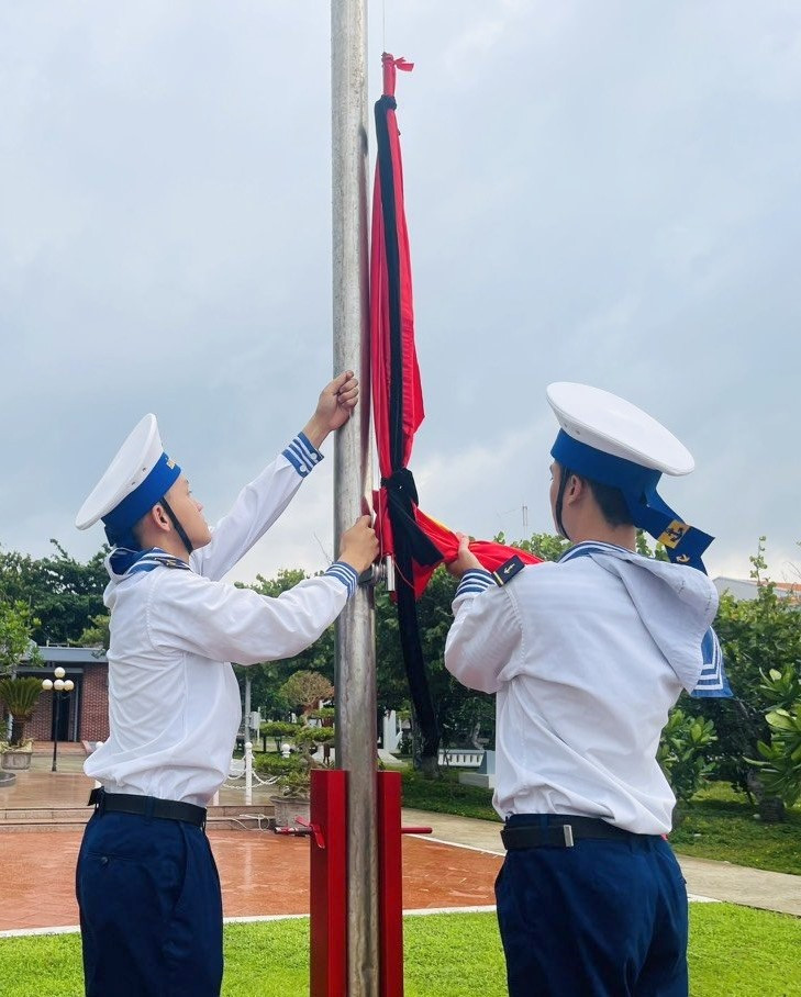 Hình ảnh cán bộ, chiến sĩ Hải quân trên quần đảo Trường Sa, Nhà giàn DK1 và tàu Hải quân treo cờ rủ tưởng nhớ Tổng Bí thư Nguyễn Phú Trọng: