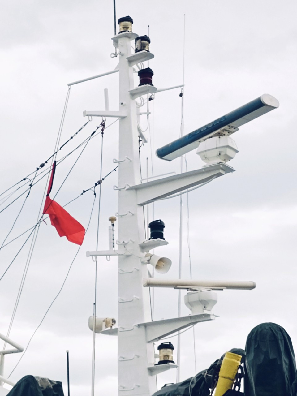 | Chiến sĩ Nhà giàn DK1 treo cờ rủ tưởng nhớ Tổng Bí thư Nguyễn Phú Trọng. |