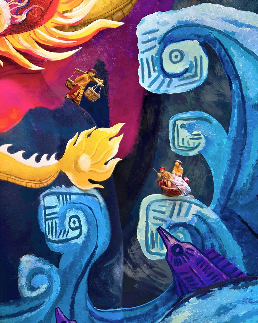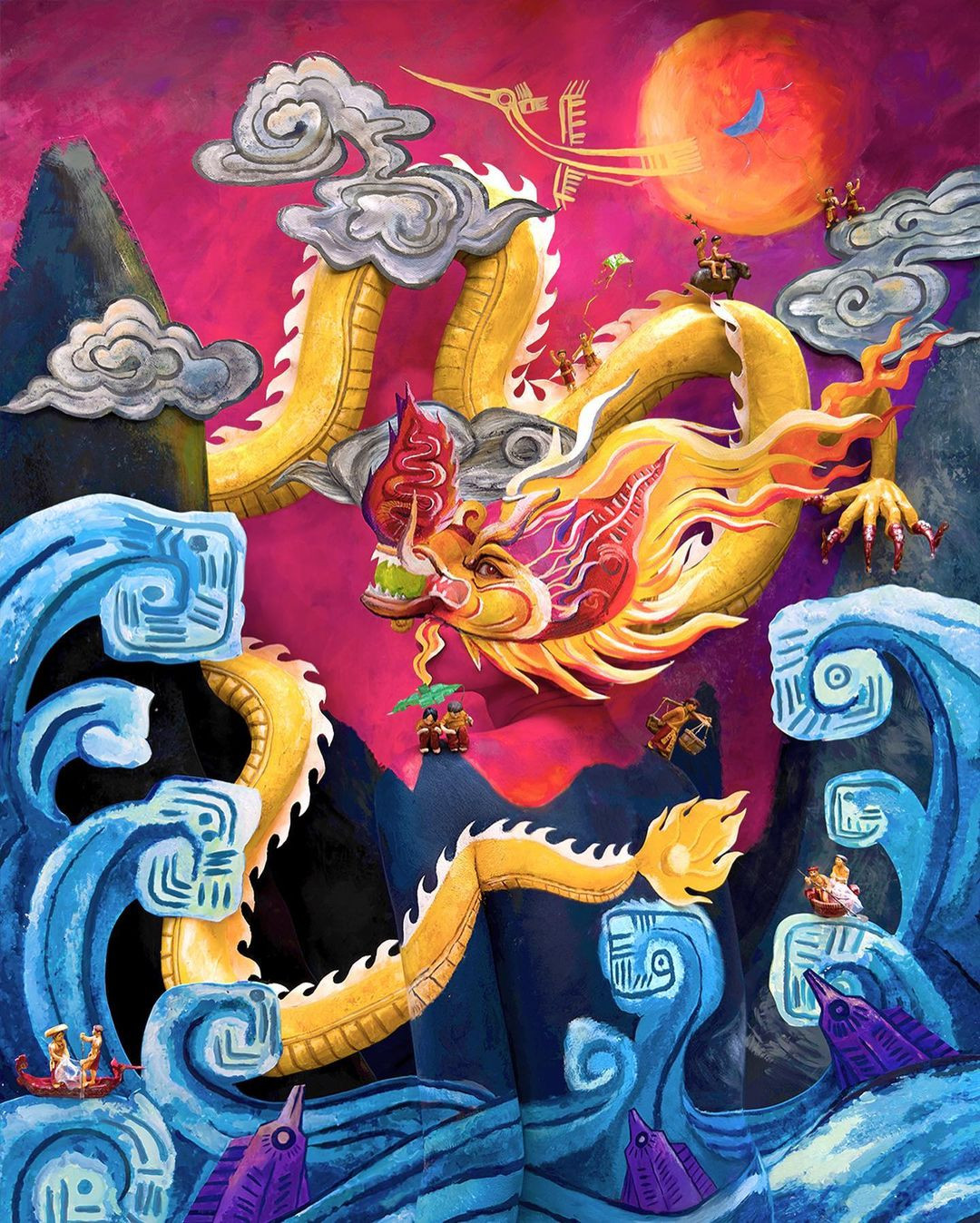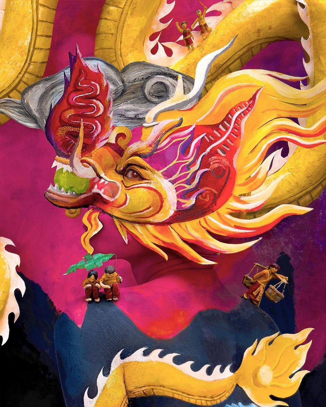 Các hình tượng văn hóa dân gian như rồng thời Lý, họa tiết Đông Sơn, họa tiết vân vũ… được sắp đặt có ý đồ, khéo léo tỉ mỉ trên nền chụp cũng như hòa quyện hoàn hảo với các nét vẽ trên cơ thể (body painting). Thông qua nghệ thuật body painting, make-up và nhiếp ảnh, hai nhà sáng tạo đã tạo nên một tác phẩm với hiệu ứng thị giác đầy ấn tượng.