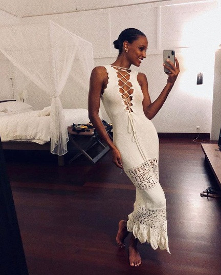 Mỹ nhân có làn da socola cuốn hút và thân hình rực lửa này từng được diện đôi cánh thiên thần Fantasy Bra 3 triệu đô trong Victoria's Secret Fashion Show năm 2016.