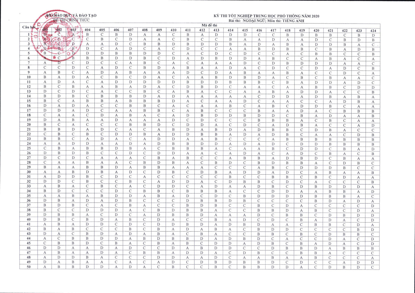 Bộ GD&ĐT chính thức công bố đáp án các môn thi tốt nghiệp THPT ảnh 1
