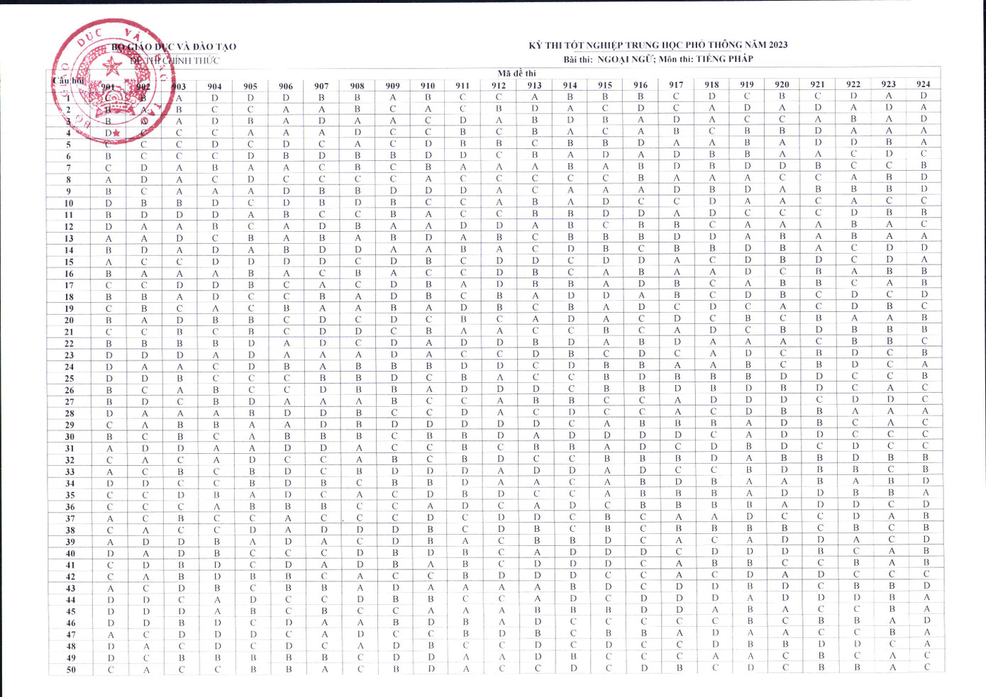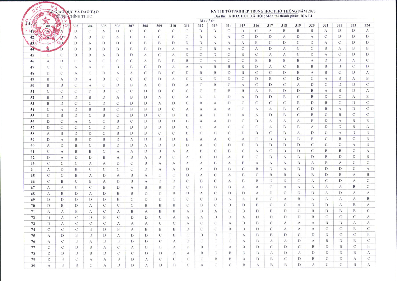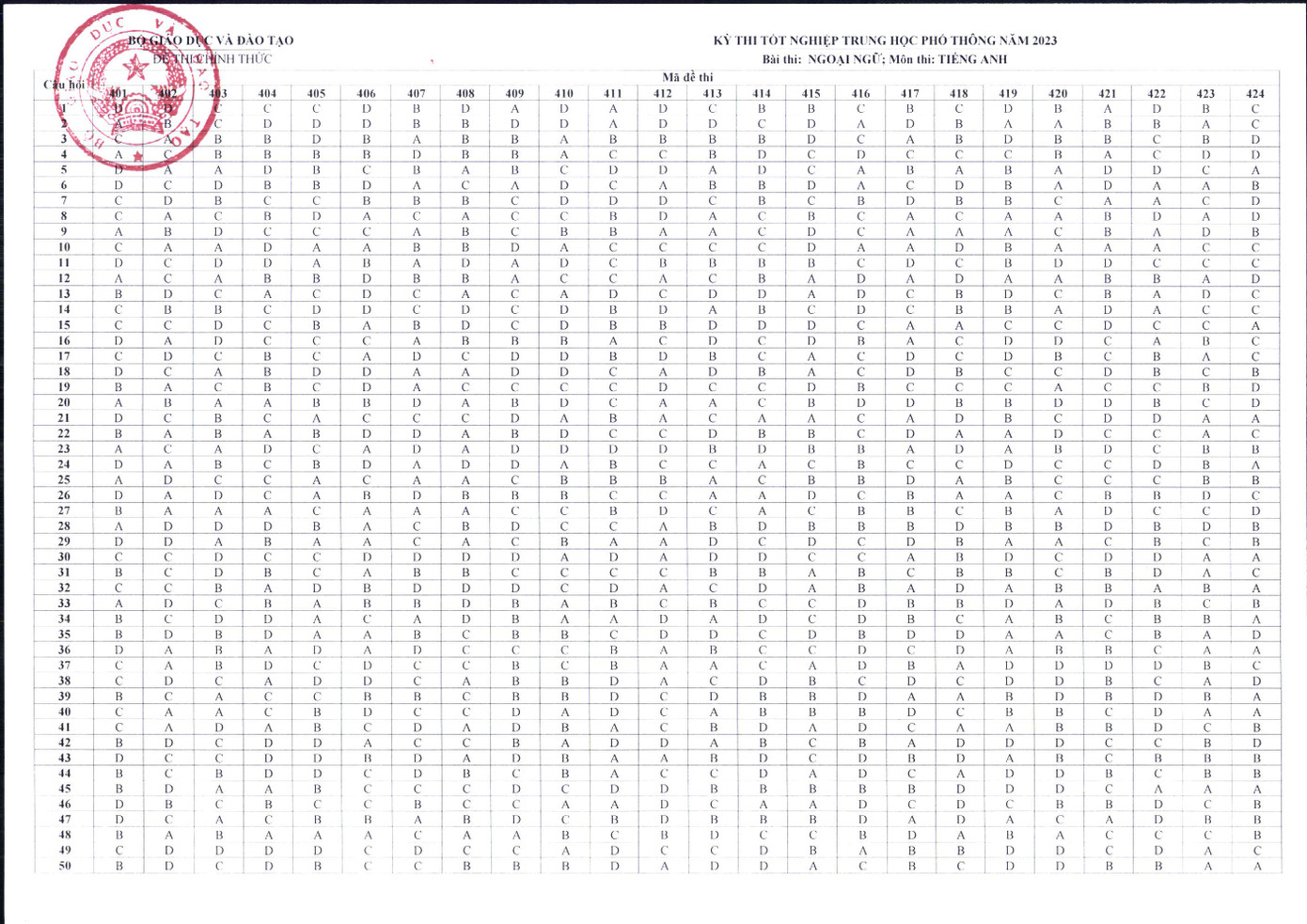 Đối với môn thi trắc nghiệm, đáp án được công bố theo tiến độ chấm thi của các địa phương. Đây là quy định được Bộ GD&ĐT đưa ra sau khi xảy ra vụ tiêu cực thi cử năm 2018.