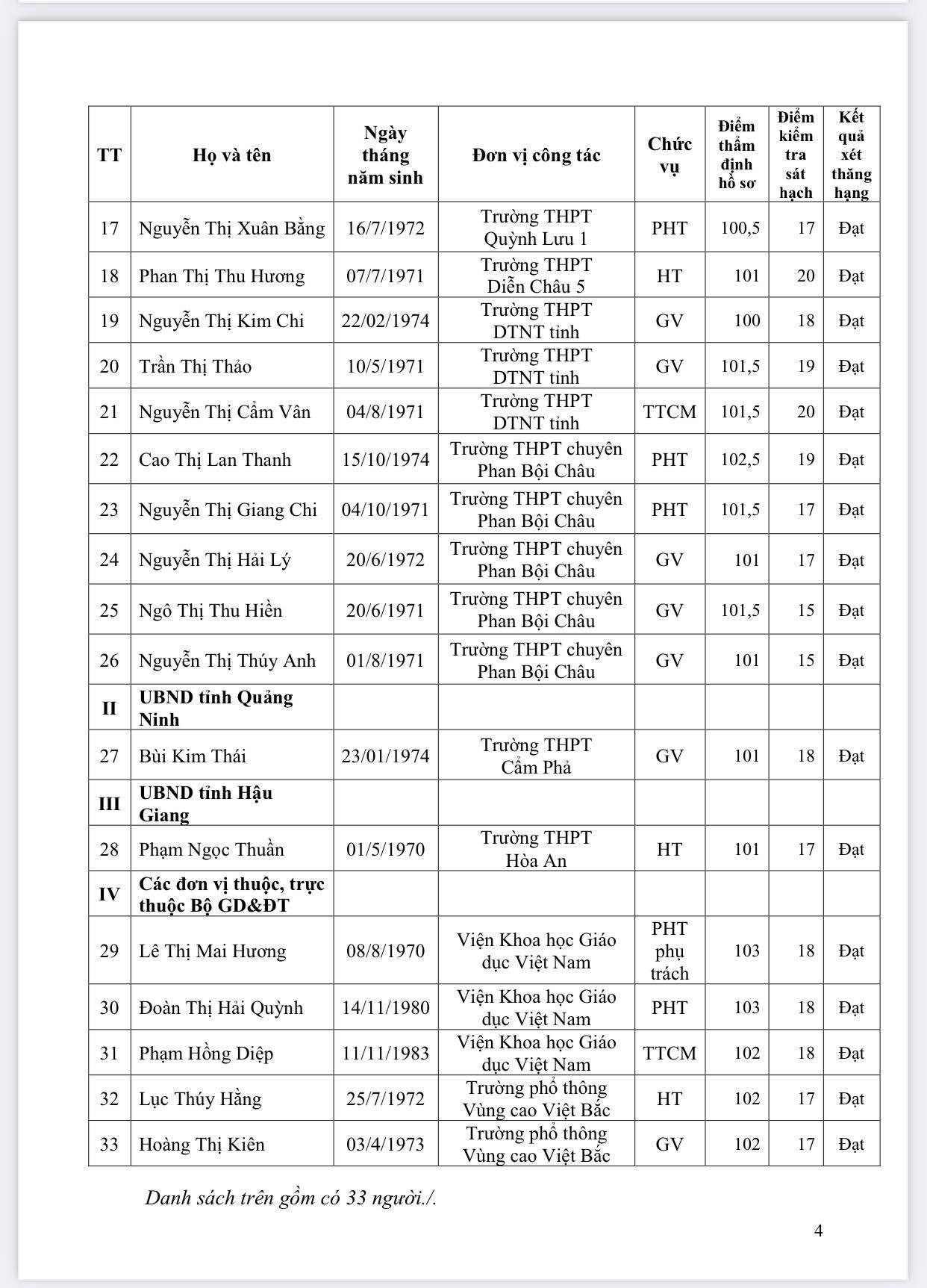 33 giáo viên này đến từ các địa phương như: Nghệ An, Hậu Giang, Quảng Ninh và các đơn vị trực thuộc Bộ GD&ĐT.