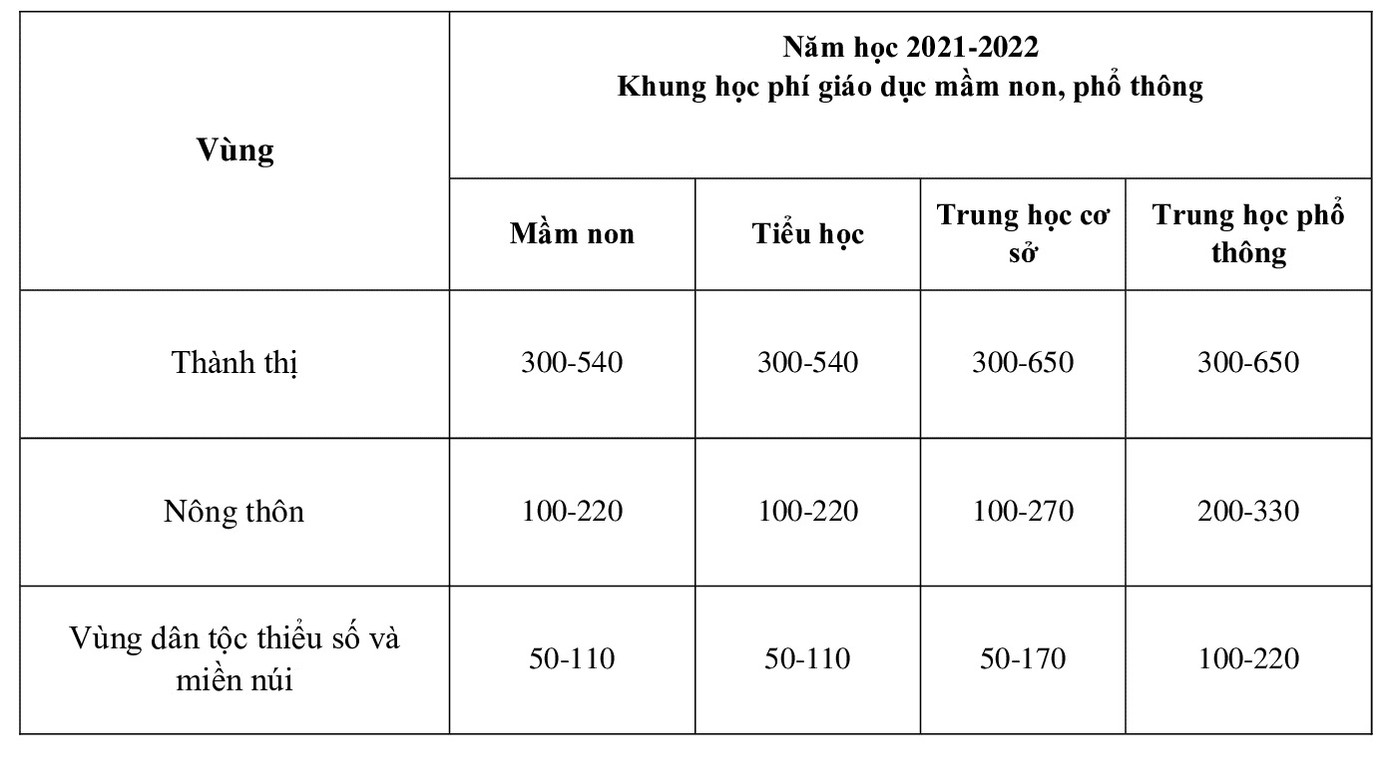 Từ năm học 2021-2022, khung, học phí được điều chỉnh theo tỷ lệ tăng tối đa 7,5%/năm phù hợp với điều kiện kinh tế xã hội của địa phương và khả năng chi trả của người dân.