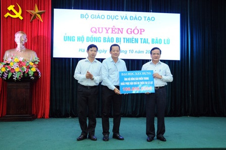 Bộ GD&ĐT tiếp tục nhận quyên góp của cán bộ, công nhân viên trong ngành và vận động các nhà tài trợ để sớm mang số tiền này về hỗ trợ, chia sẻ sự mất mát với đồng bào miền Trung.