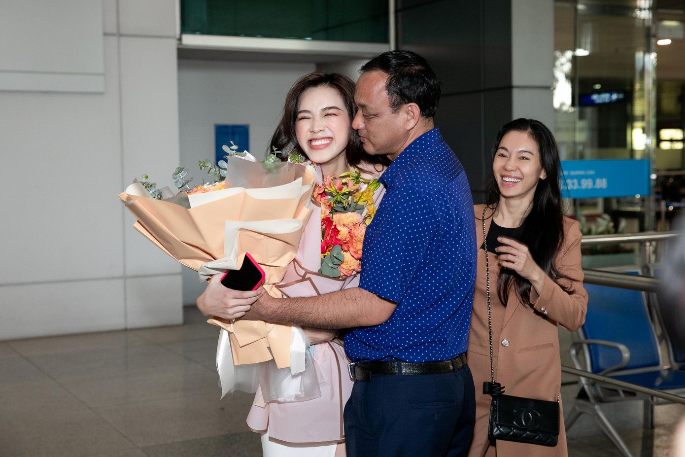 Nàng hậu không khỏi vui mừng khi đoàn tụ cùng bố và người thân sau quãng thời gian sống xa nhà. Có thể thấy, ông Đỗ Văn Tào luôn theo sát mọi hành trình của con gái.