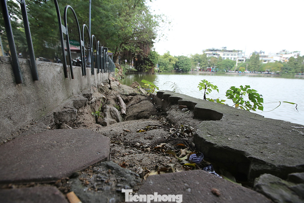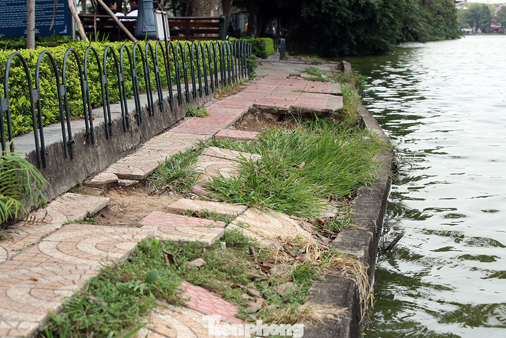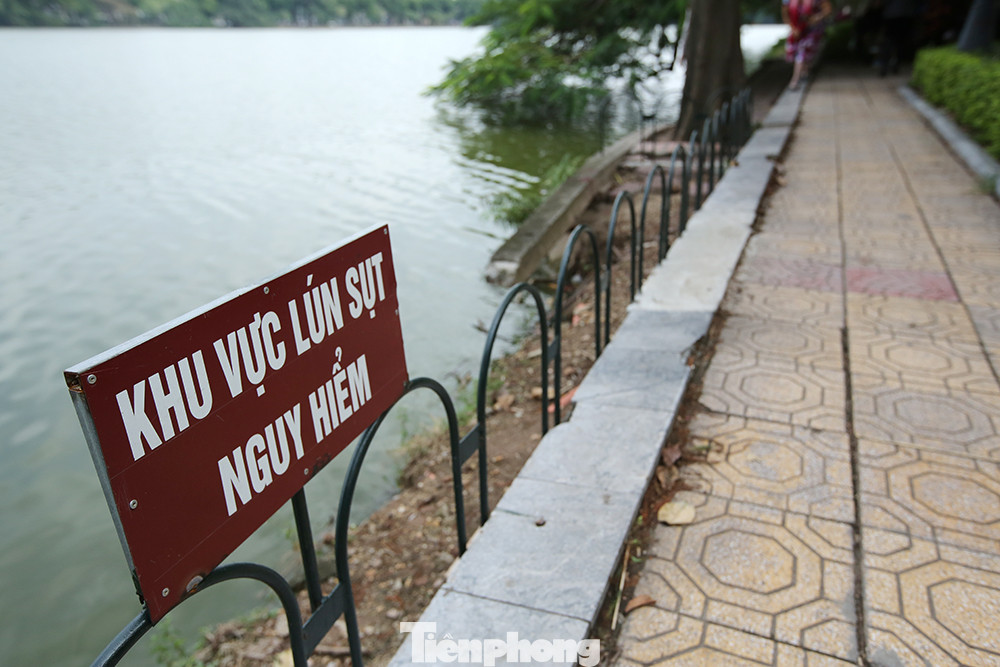 Phần lớn đường dạo bộ sát mép hồ đều không thể dự dụng họ hiện tượng sụt lún nghiêm trọng.