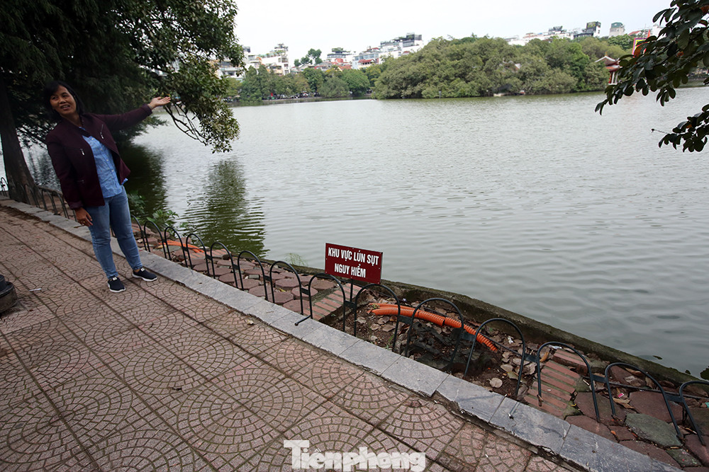 Theo thông tin từ UBND quận Hoàn Kiếm, hệ thống kè xung quanh hồ Hoàn Kiếm được xây dựng từ lâu, chưa được đầu tư cải tạo nên đã có hiện tượng lún sụt từ trước năm 2017 và diễn biến nhanh hơn từ năm 2018.