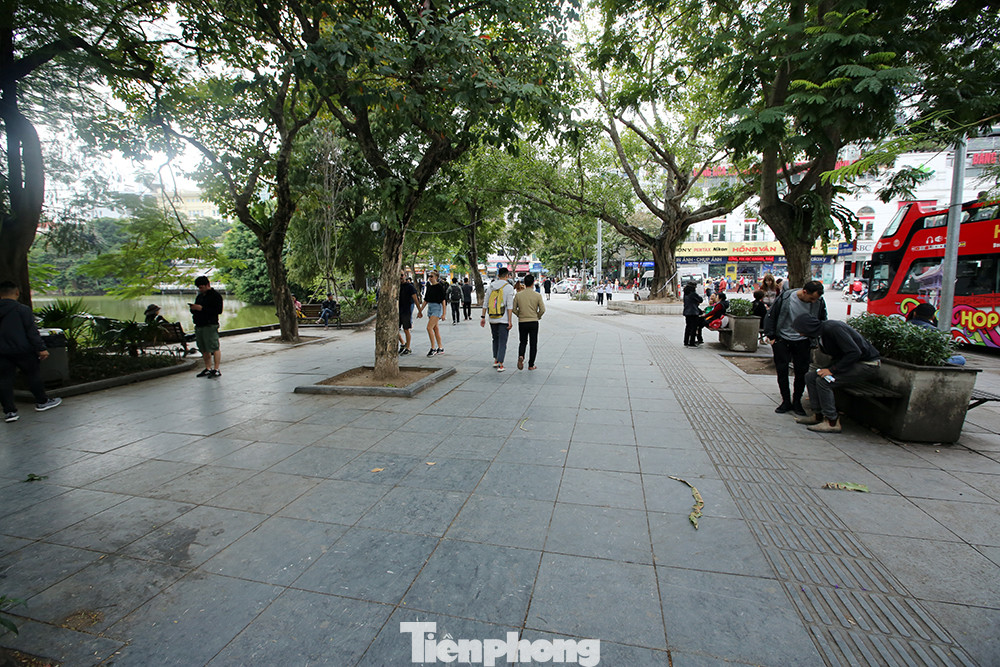 Quanh hồ Hoàn Kiếm đang được sử dụng khá nhiều vật liệu lát vỉa hè khác nhau.