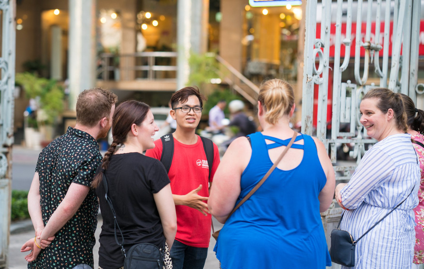 Hiện Phước đã có thẻ hướng dẫn viên du lịch quốc tế và đã làm nghề được hơn ba năm. “Năm thứ ba ở trường ĐH Ngoại thương, thông qua lời giới thiệu của một người bạn, mình đã vào làm cộng tác tại công ty du lịch Intrepid. Lần đầu tiên, mình được giao tiếp với người nước ngoài nhiều như vậy. Ngoài ra, mình phải cung cấp cho họ thông tin về đất nước Việt Nam, giúp họ có những trải nghiệm tuyệt vời trên đường tour. Công việc giúp mình càng ngày càng chuyên nghiệp trong tác phong và quan trọng là khả năng nói tiếng Anh của mình tăng vượt bậc”, Phước chia sẻ.