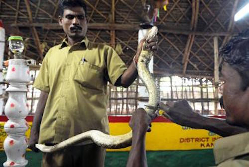 Nọc rắn sẽ được sử dụng để điều chế thuốc chống nọc độc. Kể từ năm 1970, hợp tác xã của người Irula đã cải tiến phương pháp điều trị rắn cắn ở Ấn Độ, bằng cách sử dụng thuốc bào chế từ chính cơ thể rắn. Tuy nhiên, để bảo vệ loài rắn khỏi việc bị tàn sát, chính phủ Ấn Độ chỉ cho phép giữ chúng trong một tháng để lấy nọc, sau đó phải thả về thiên nhiên. Ảnh: News International.