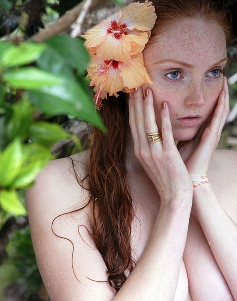 Người mẫu Anh quốc Lily Cole che ngực đầy quá đỗi gợi cảm.