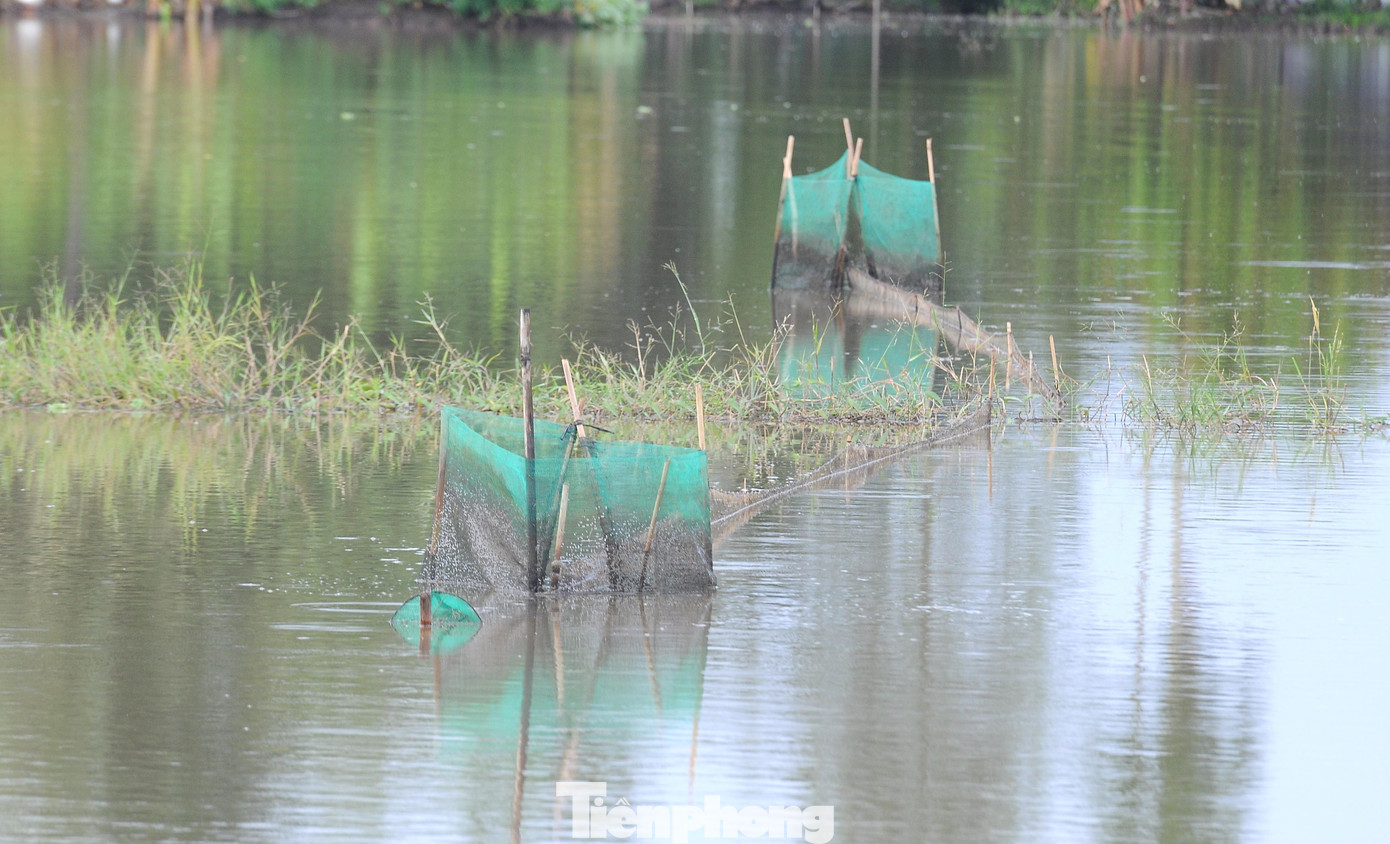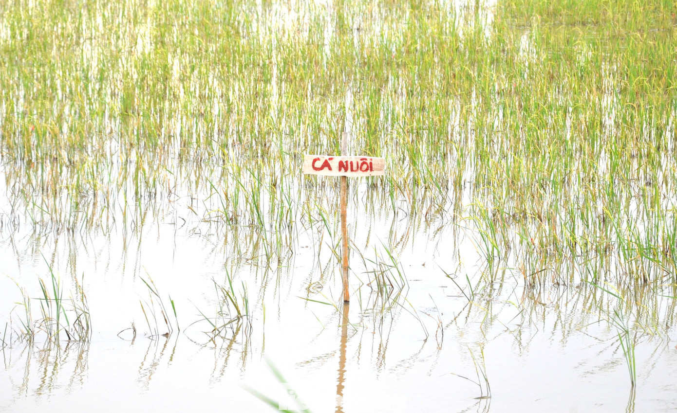 | Các ruộng lúa được vây lưới, thả cá. Đây cũng là cách nuôi cá tự nhiên, không cần tốn thức ăn. Sau 2-3 tháng, khi nước rút, người dân thu hoạch cá để sản xuất vụ Đông Xuân. |