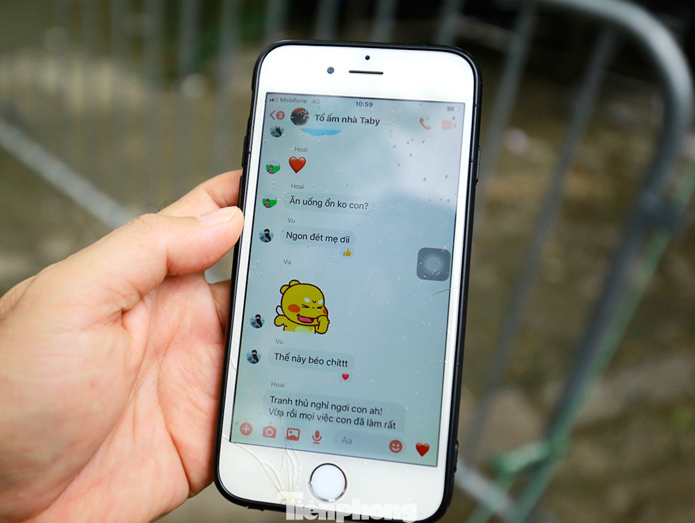 Một người mẹ từ Hải Phòng đang liên lạc với con mang đồ tiếp tế để gửi vào bên trong