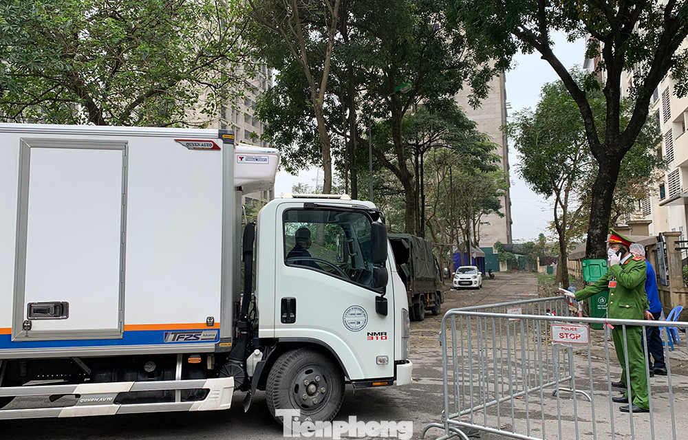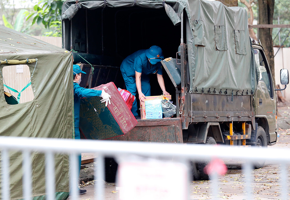 Sau khi phun khử trùng, xe quân đội đặc chủng sẽ chở đồ tiếp tế này vào bên trong