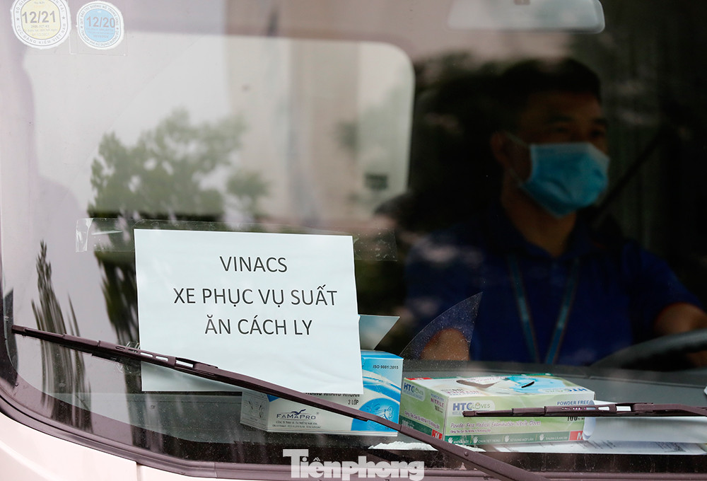 Xe phục vụ xuất ăn cho người cách ly đều được kiểm tra nghiêm ngặt mới được đưa vào bên trong
