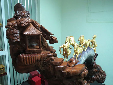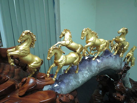 Từ khâu thiết kế, tạo mẫu, kiểu dáng và các thế phong thủy của ngựa, đến khâu lựa chọn gỗ, đá thạch anh tím, các công đoạn đục đẽo, tạo dáng, đúc… đều tốn khá nhiều thời gian và chi phí.